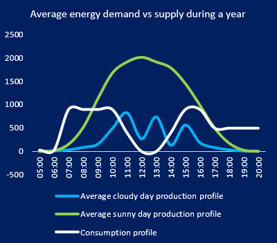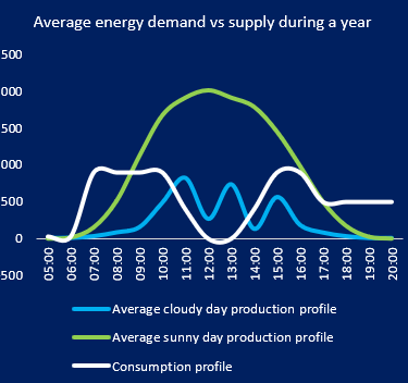 The situation is further complicated by variability in energy production due to weather and seasonal changes. Even on sunny days, output can differ by tens of percent depending on cloud cover, the angle of sunlight, or partial shading of the installation. Cloudy days add even greater unpredictability: early mornings and late evenings almost always require grid energy, while overproduction appears only around midday. Aligning production profiles with individual consumer demand therefore requires precise planning, continuous monitoring, and flexible energy management.